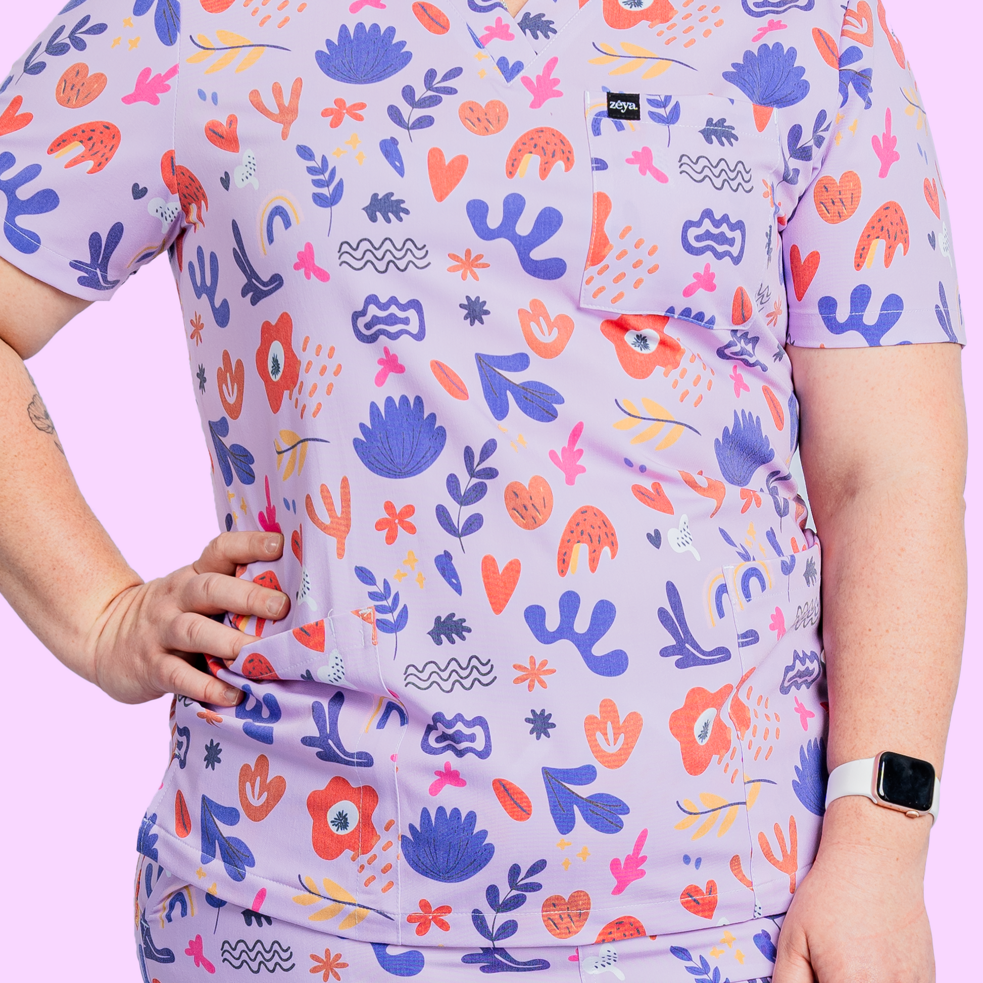 Boho Lavender is for the nurse who brings calm to the chaos. With its soft purples, artistic detailing, and a flow that mirrors your every movement, this set is designed to ground you even on the busiest of days. It’s equal parts comfort and quiet confidence, inspired by the steady presence you bring to every shift.