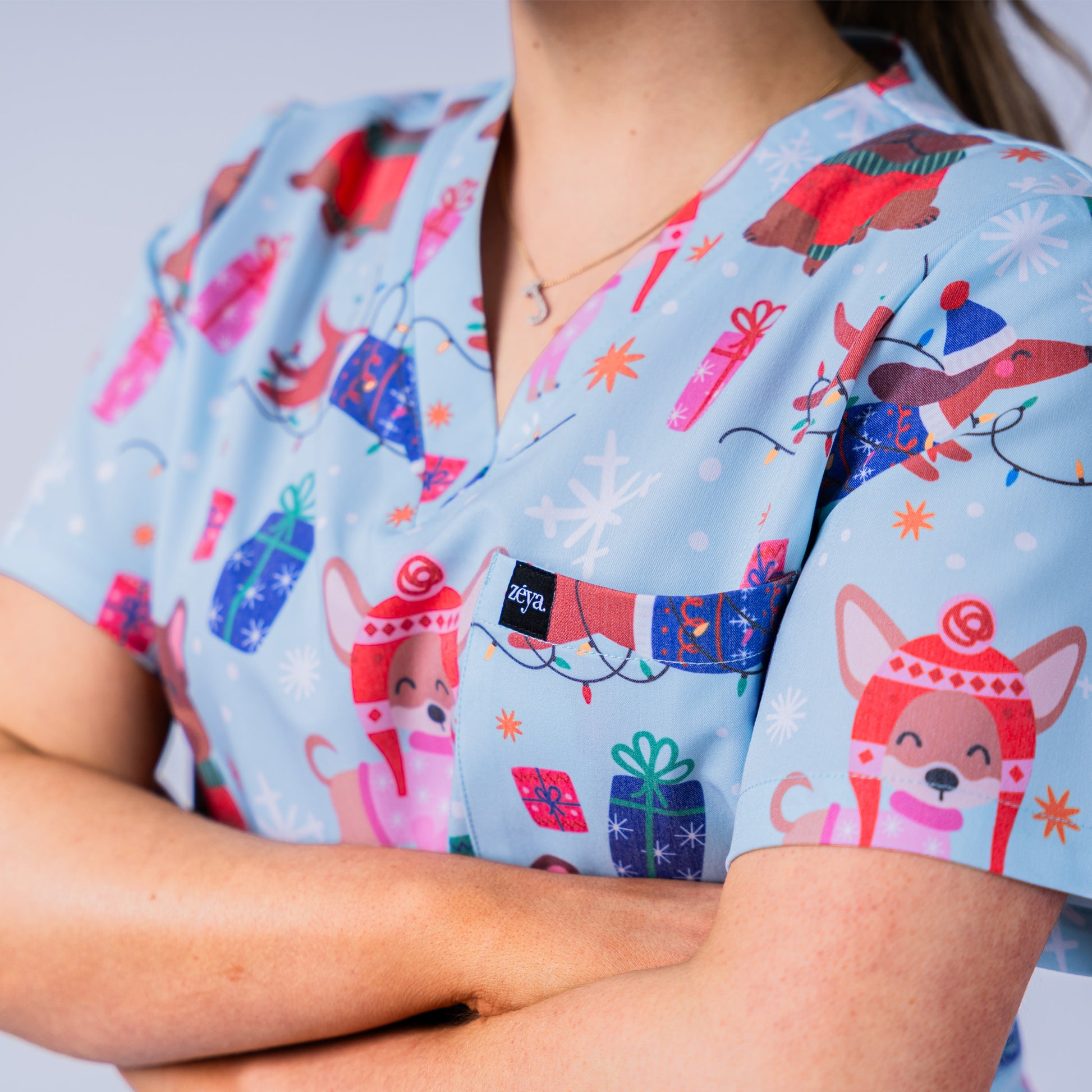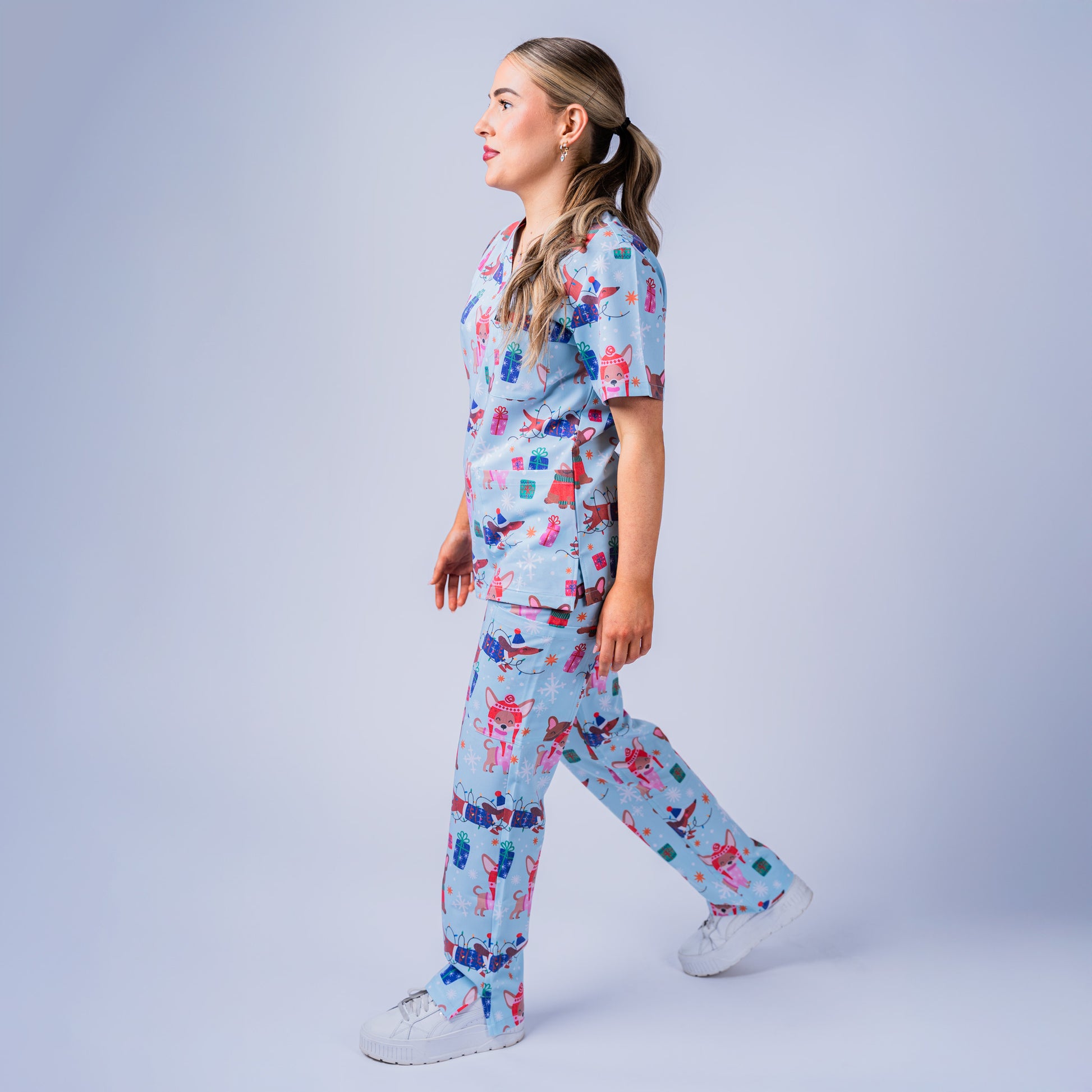 Meet the scrubs that have got more bark and charm than your hospital coffee machine. The Christmas Pooches Scrub Set is a dog-lover’s holiday dream—featuring festive Frenchies, jolly Chihuahuas, and reindeer-ready snaggies bringing tail-wagging joy to every ward.